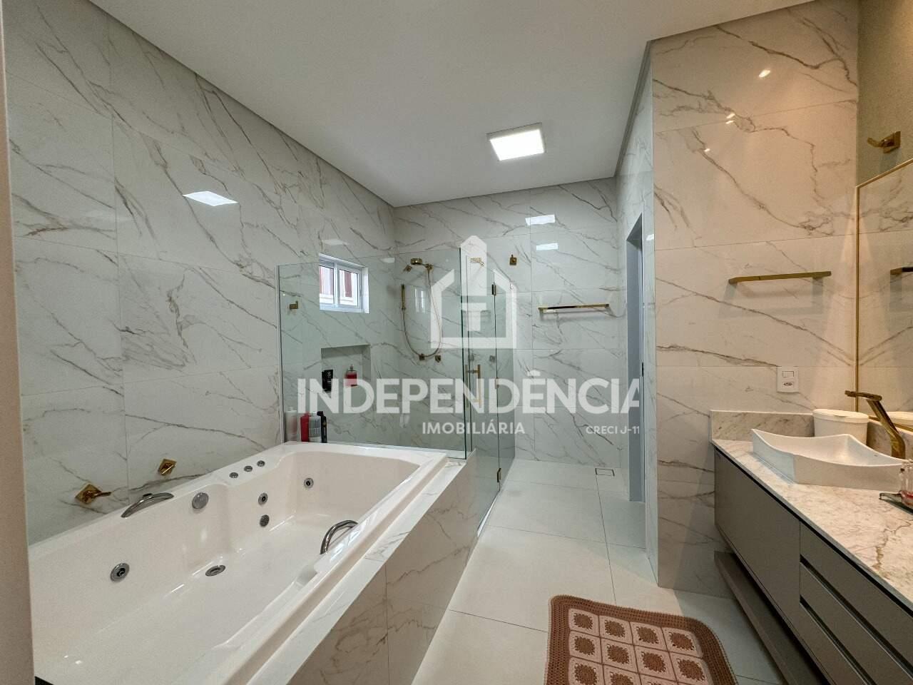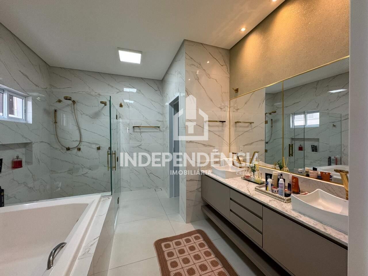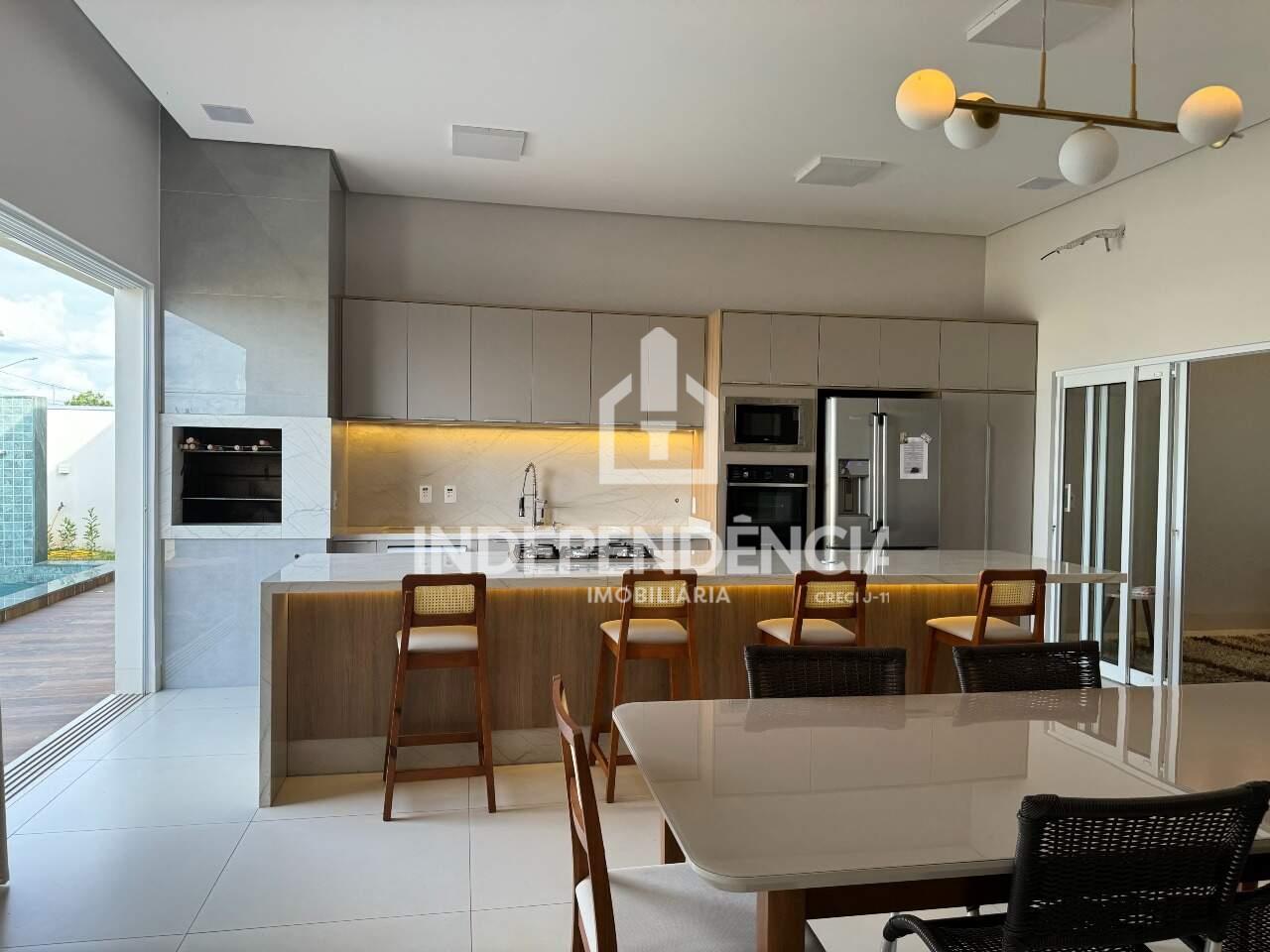 Casa com 03 suítes, sendo uma com closet, sala de tv, lavabo, cozinha gourmet, área de serviço, piscina e garagem.